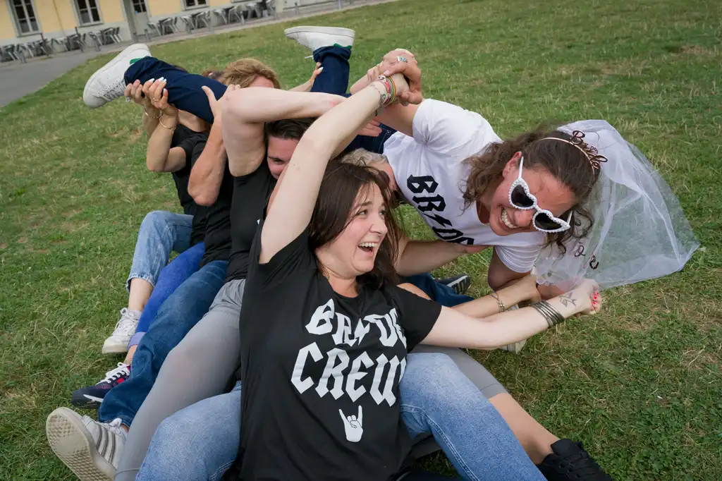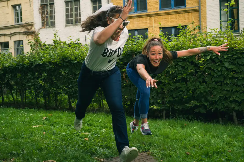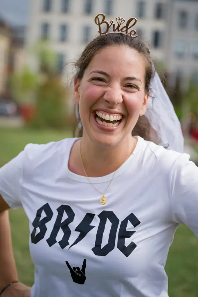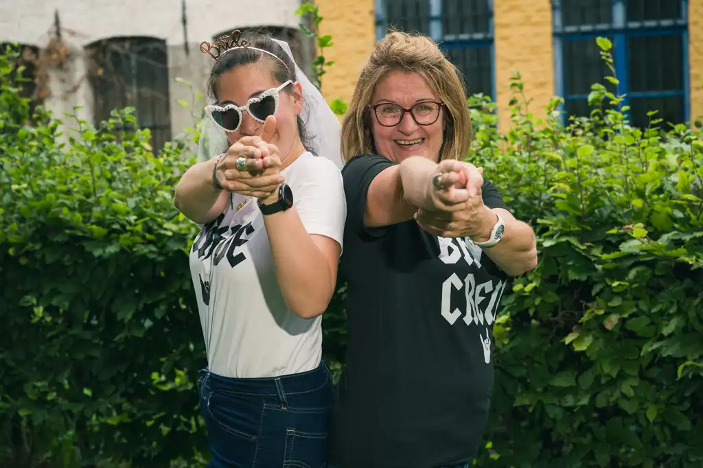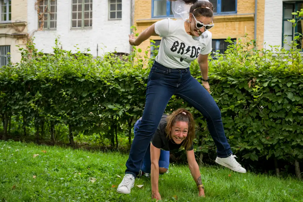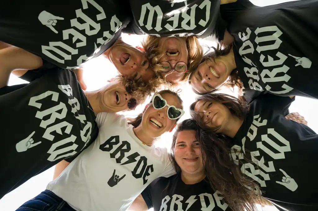 Retour sur un shooting EVJF Vieux-Lille haut en couleur avec Maud et sa Bird Team ! Pour célébrer son enterrement de vie de jeune fille, les filles avaient choisi un look coordonné : tee-shirts noirs “Bird Team” et jean pour toutes, sauf Maud qui portait fièrement la version blanche, symbole de la future mariée. L’ambiance ? Un mélange explosif de rires, de complicité et de rock attitude.